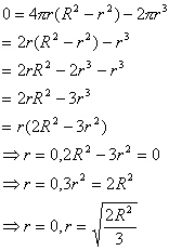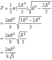 Since r=0 is the other boundary condition our only hope is that the other solution we have found gives us some positive volume. If so it will be the global maximum on our interval [0,R]. So we now evaluate the volume,