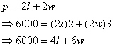 We will also need, of course, the function we are trying to maximize which is the standard area equation for a rectangle.
